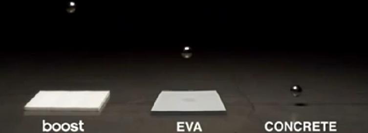위의 사진처럼 쇠공을 떨어뜨렸을 때 기존의 EVA보다 훨씬 뛰어난 에너지 리턴을 보여준다.